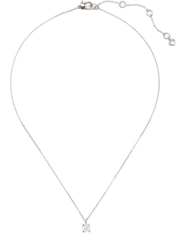 - Discover the perfect blend of sophistication and trendiness wearing Kate Spade New York® Little Luxuries 6mm Square Pendant: Elevate your style with silver-plated brass and dazzling cubic zirconia stones. Embrace elegance and versatility with an irregular stone shape, secured by a lobster clasp for effortless wear.