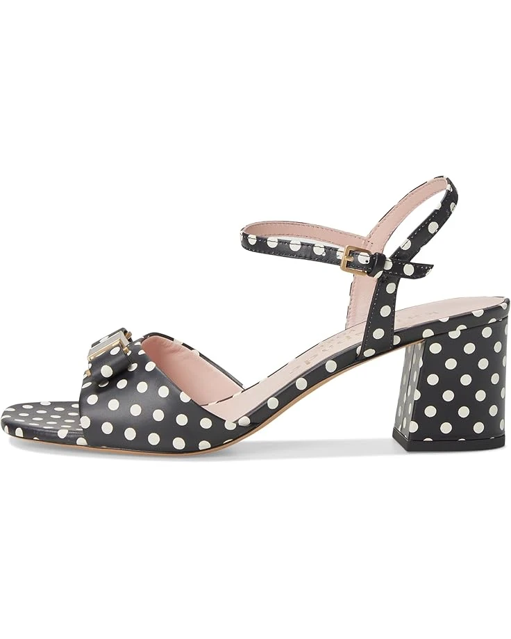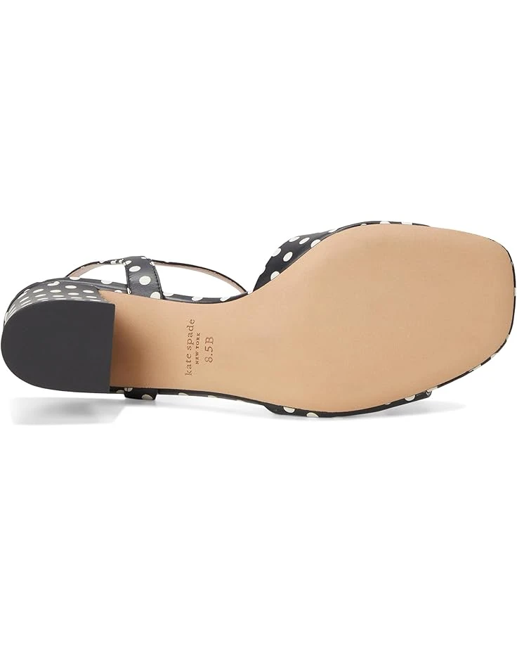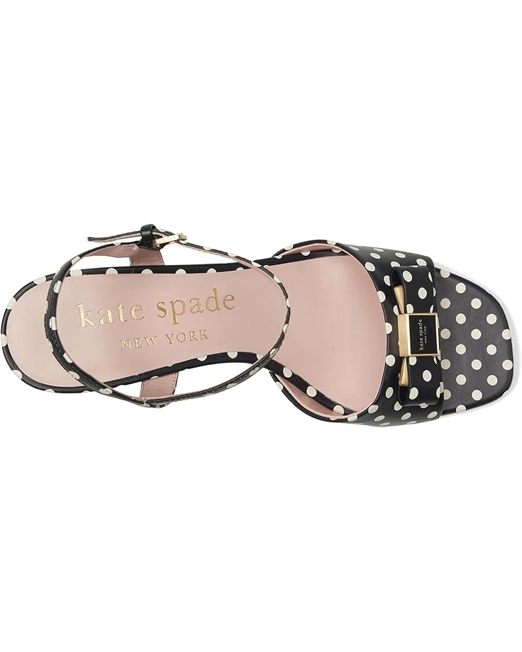 - Give a fashionable twist to your appeal wearing Kate Spade New York® Bowdie Block Heel Sandal. The open squared-toe sandals are designed with a allover polka dot patterned leather upper, leather lining, and a comfortable insole. The ankle strap & buckle closure ensures a secure fit and the block heel detail elevates the style.