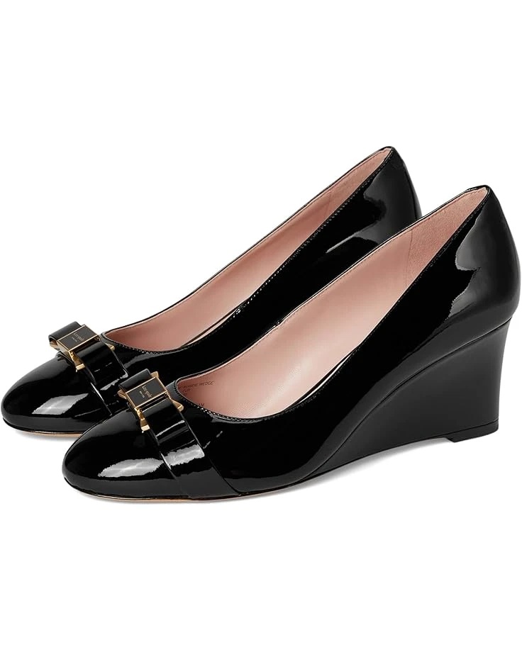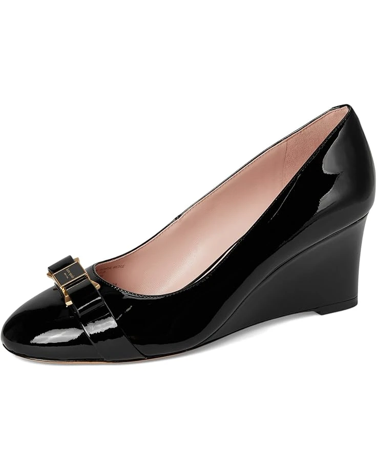 - From day to night, the Kate Spade New York® Bowdie Wedge is your go-to for effortless elegance. Crafted from luxe leather for the upper, lining, insole, and outsole, this pull-on wedge offers supreme comfort and style. The signature bow embellishment, adorned with metal hardware and the iconic brand logo, adds a playful yet polished touch to your look. Designed for easy wear, these wedges are perfect for elevating everyday outfits or making a statement at special events. Sleek, versatile, and oh-so-feminine, the Bowdie Wedge is your go-to choice for effortless glamor with a modern edge.