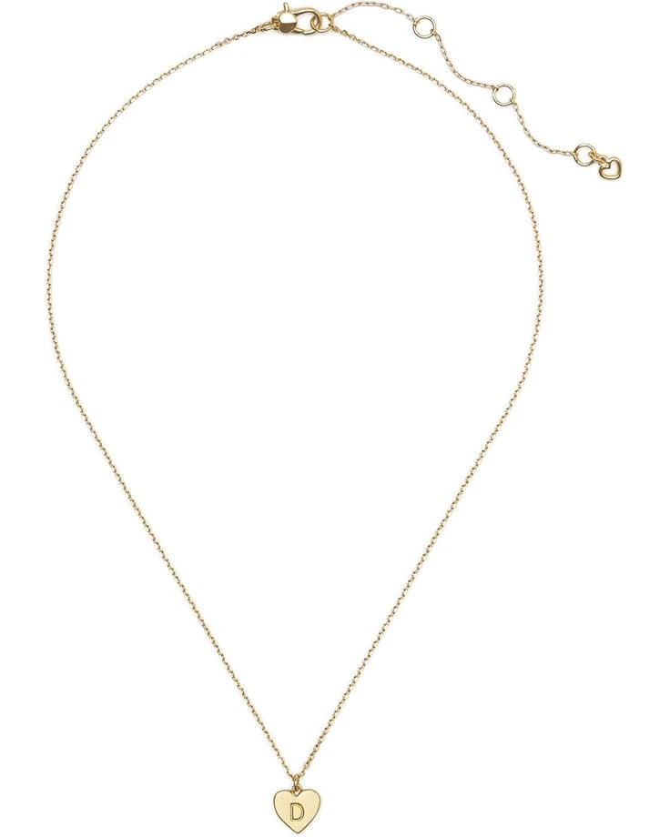 - Radiate love and individuality with this initial-adorned heart-shaped Kate Spade New York® D Pendant necklace, a symbol of personalized elegance. Crafted from gold-plated brass metal with adjustable lobster clasp closure.