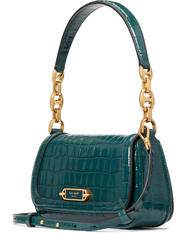 - Add some sophistication to your outfit carrying the Kate Spade New York® Gramercy Croc Embossed Leather Small Flap Shoulder Bag. This stunning bag is made of croc-embossed leather with smooth leather trim and microsuede lining. It features a magnetic snap-flap closure, a plaque logo, and our signature spade link accents. It also has multiple pockets for your essentials and an adjustable crossbody strap for versatility.