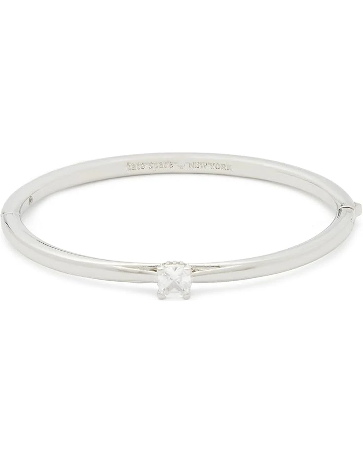 - Adorn yourself in the timeless beauty of the Kate Spade New York® Hinged Bangle that complements versatile outfits. The bangle comes with coated and fair-cut stones and a cubic zirconia gem with bow detailing.