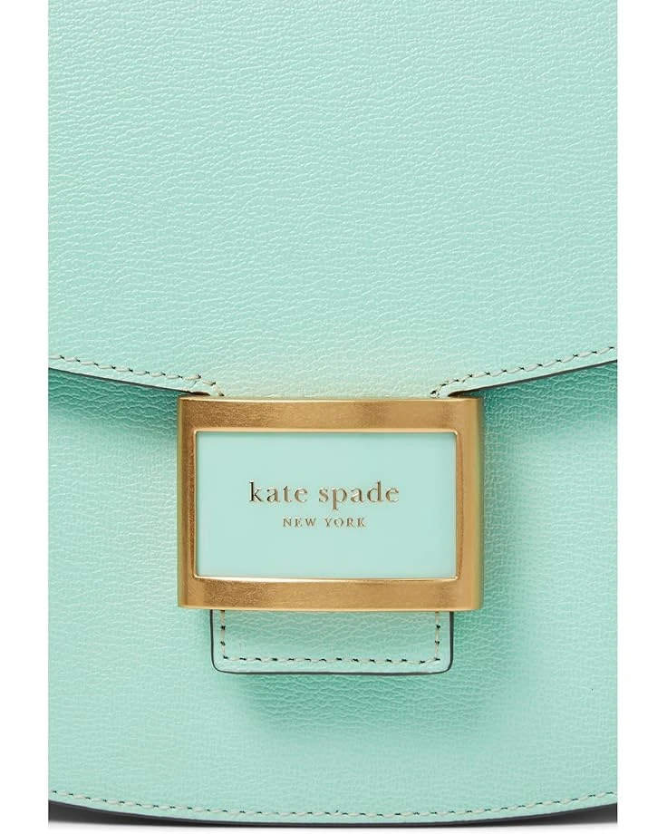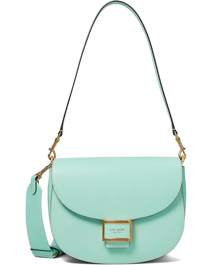- Lightweight and stylish, the Kate Spade New York® Katy Textured Leather Convertible Saddle Bag is the perfect accessory to style up your outfits and looks. This saddle bag comes with an adjustable and removable shoulder strap and a top grab handle to conveniently carry it around. The cowhide leather construction of the purse offers durability. From parties to events, flaunt your great fashion carrying this leather purse.
