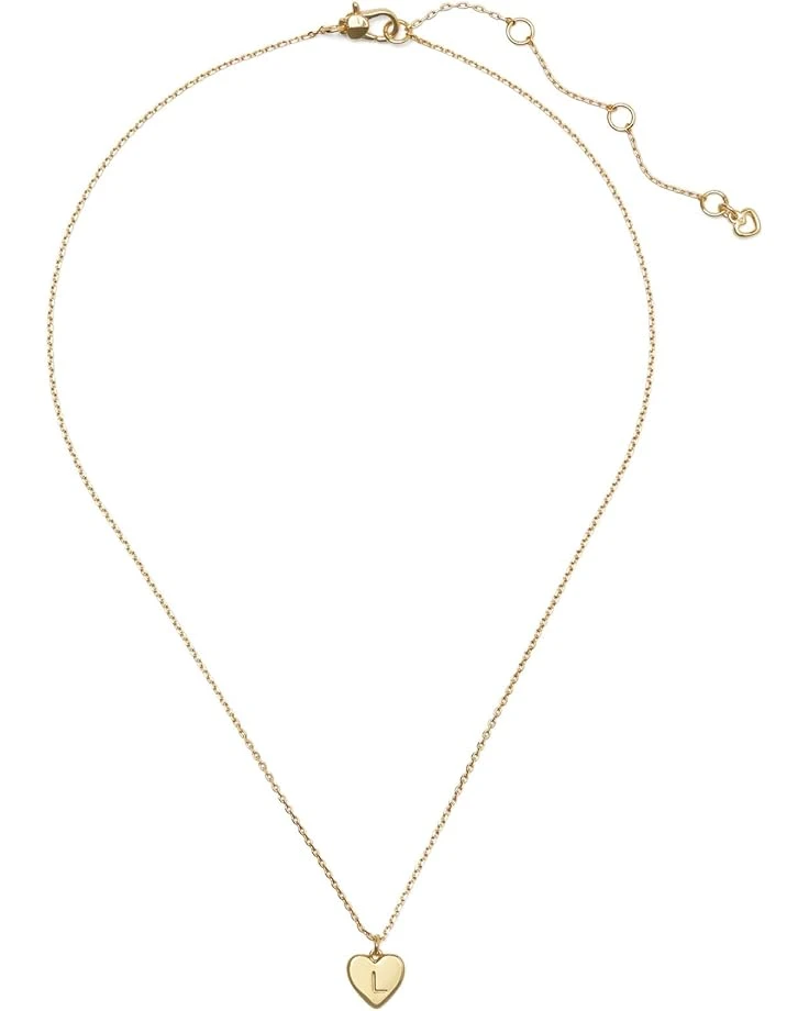 - Elegance meets personal touch with this heart-shaped Kate Spade New York® L Pendant necklace, adorned with an initial for a uniquely charming accessory. Crafted from gold-plated brass metal with adjustable lobster clasp closure.