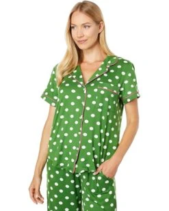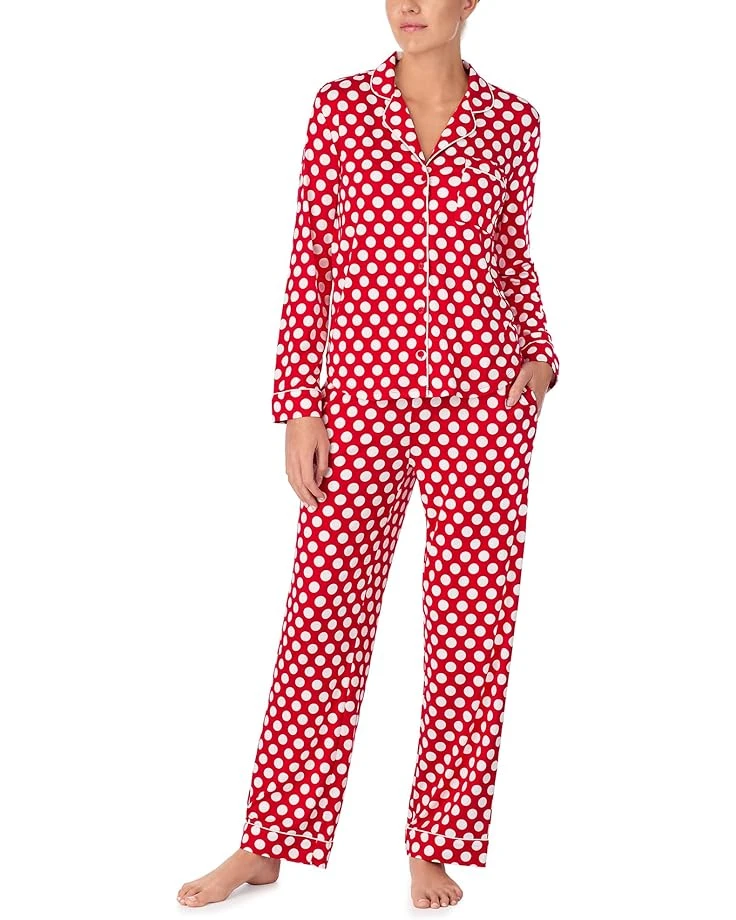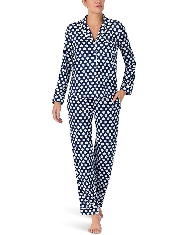 Kate Spade New York Long Sleeve Cozy Jersey Notch Collar PJ Set | Sleepwear