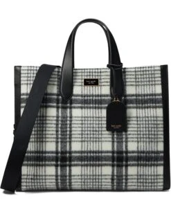 - Ramp up your everyday classy look carrying the Kate Spade New York® Manhattan Studio Plaid Fabric Large Tote. This handbag is crafted from textile construction and features two top handles, clip closure, and allover check print.