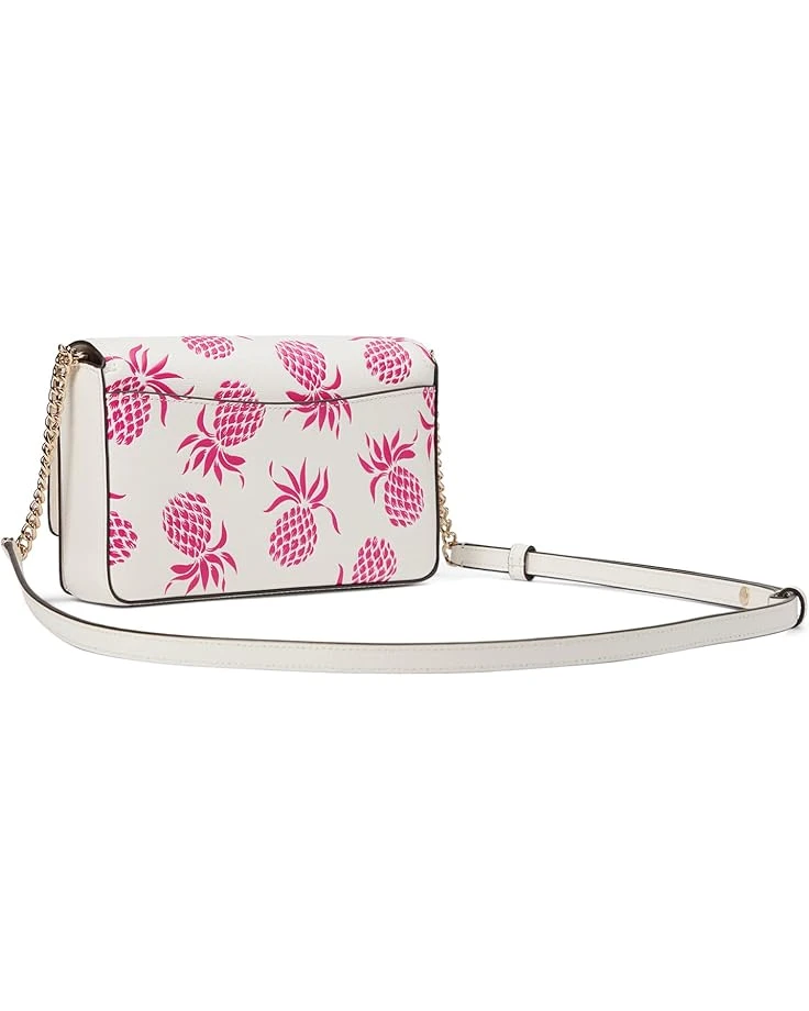 - Take on your busy days in a stylish and elegant way by choosing the Kate Spade New York® Morgan Pineapple Embossed Saffiano Leather Flap Chain Wallet. Sleek and absolutely chic, the bag is crafted in scratch-resistant saffiano leather embossed with a lovely pineapple pattern all over. It is secured with a magnetic snap closure and offers ease of organization with its three slip pockets, one zippered pocket, and six card slots.