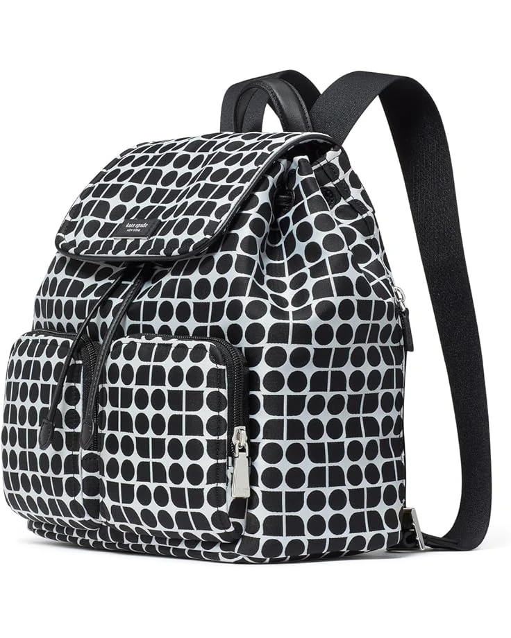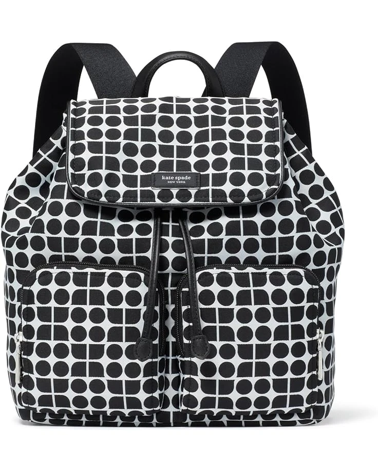 - Grab the enchanting elegance of the Kate Spade New York® Noel Printed Fabric Backpack. Crafted from luxurious leather, this jacquard masterpiece is more than a bag − it’s a fashion statement. Checkpoint-friendly, it seamlessly blends style and functionality. Includes a crossbody bag for versatility, with one spacious compartment, three pockets, and a secure zipper closure.