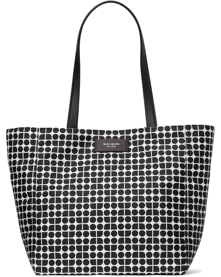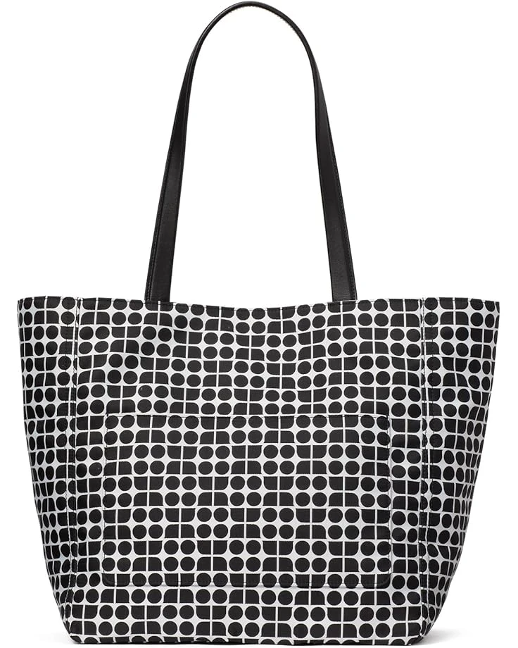 - Unleash your style with the Kate Spade New York® Noel Printed Fabric Large Tote − where festive charm meets everyday elegance. Adorned in playful polka dots, this Jacquarded wonder boasts a spacious compartment and three pockets for organized bliss. Embrace comfort with the chic shoulder strap, sealed with a secure zipper closure.
