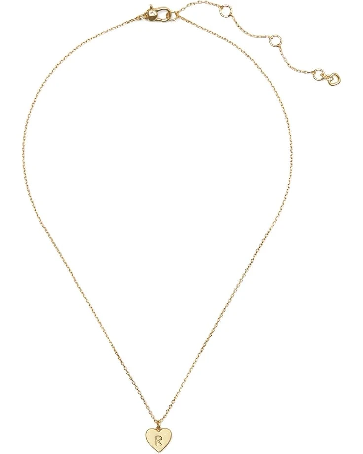 - Express love and uniqueness with this heart-shaped Kate Spade New York® R Pendant necklace, featuring an initial that adds a personalized touch. Crafted from gold-plated brass metal with adjustable lobster clasp closure.
