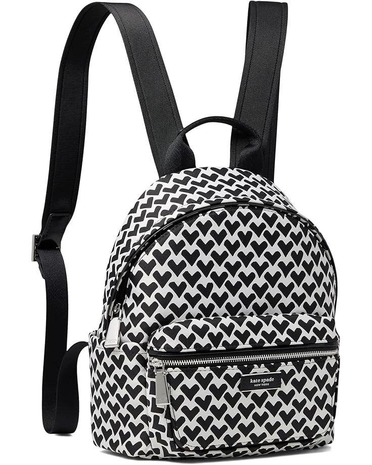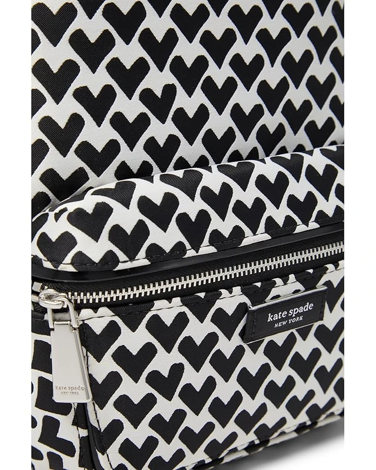 - Build-up your lovely and endearing look with the Kate Spade New York® Sam Icon Modernist Hearts Jacquard Fabric Small Backpack. It comes with a fabric lining, zippered closure, and adjustable shoulder straps for a custom fit. The six interior slip pockets help keep your belongings safe.