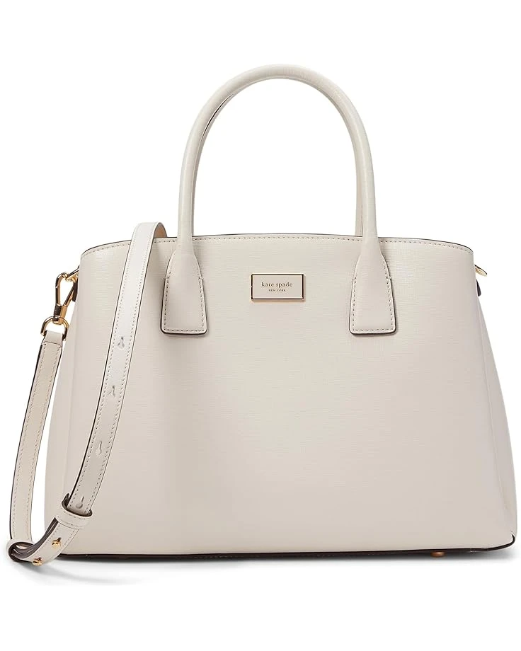 - Designed with multiple compartments and pockets for enough storage space, the Kate Spade New York® Serena Saffiano Leather Satchel is the perfect accessory to carry your stuff with style. The divided interior design of the bag ensures easy organization. This leather satchel comes with a zippered and magnetic snap closure that offers easy access. The rectangular shape and compact size add to its style while the adjustable strap of the satchel makes it easy to carry around. From your work commute to outings, this leather bag is a great choice.