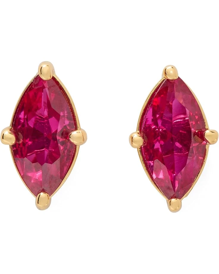 - Complete your party looks and outfits wearing the Kate Spade New York® Signature Solitaire Studs. These studs are made from brass in a gold finish. The cubic zirconia gem in the center offers an eye-catching twist while the signature spade ear clutch backs make them easy to wear and remove. These gold-finish studs are the perfect accessory for your gold jewelry collection.