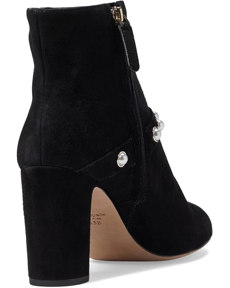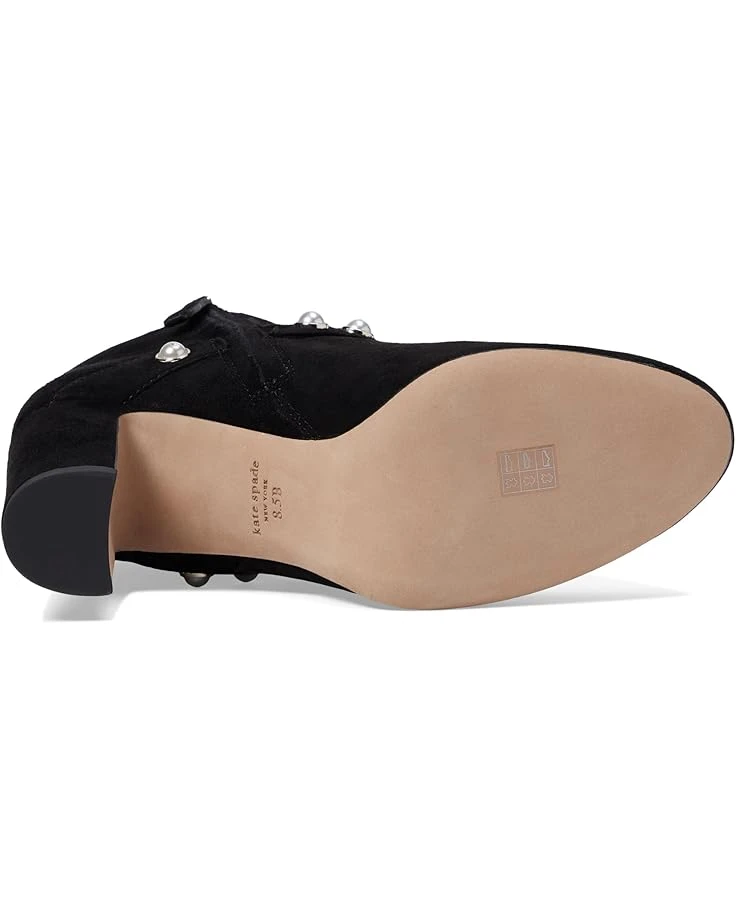 - The Kate Spade New York® Stunner Bootie Heels exude an appealing look with the contrasting pearl accented vamp. This almond toe pair features suede upper construction with zippered side closure and block heels.