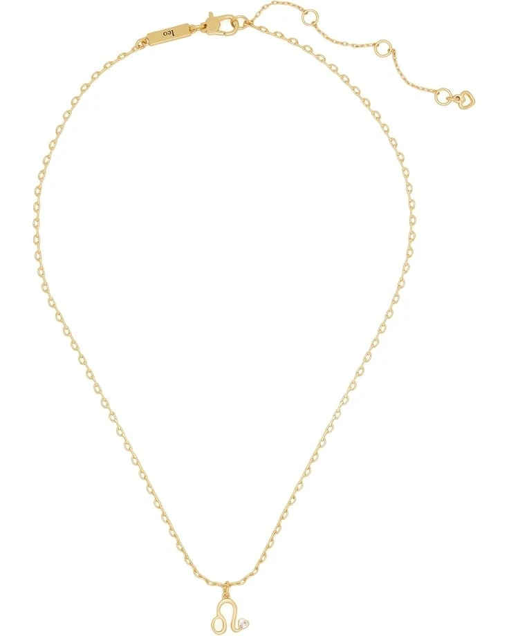 - Celebrate your fierce inner lion styling the Kate Spade New York® What’s Your Sign Leo Mini Pendant. Crafted from luxe brass and adorned with a sparkling Cubic Zirconia, this statement piece lets your zodiac pride shine. The elegant mini pendant is suspended on a sleek chain with a secure lobster clasp for easy wear. Perfect for daily glam or as a meaningful gift, this eye-catching piece is designed to turn heads.